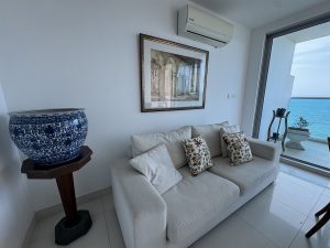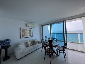 Vive frente al mar Caribe con una vista espectacular desde este moderno y acogedor apartamento de una alcoba en el exclusivo Edificio Zafiro, ubicado en Marbella, una de las zonas más tranquilas y renovadas de Cartagena.